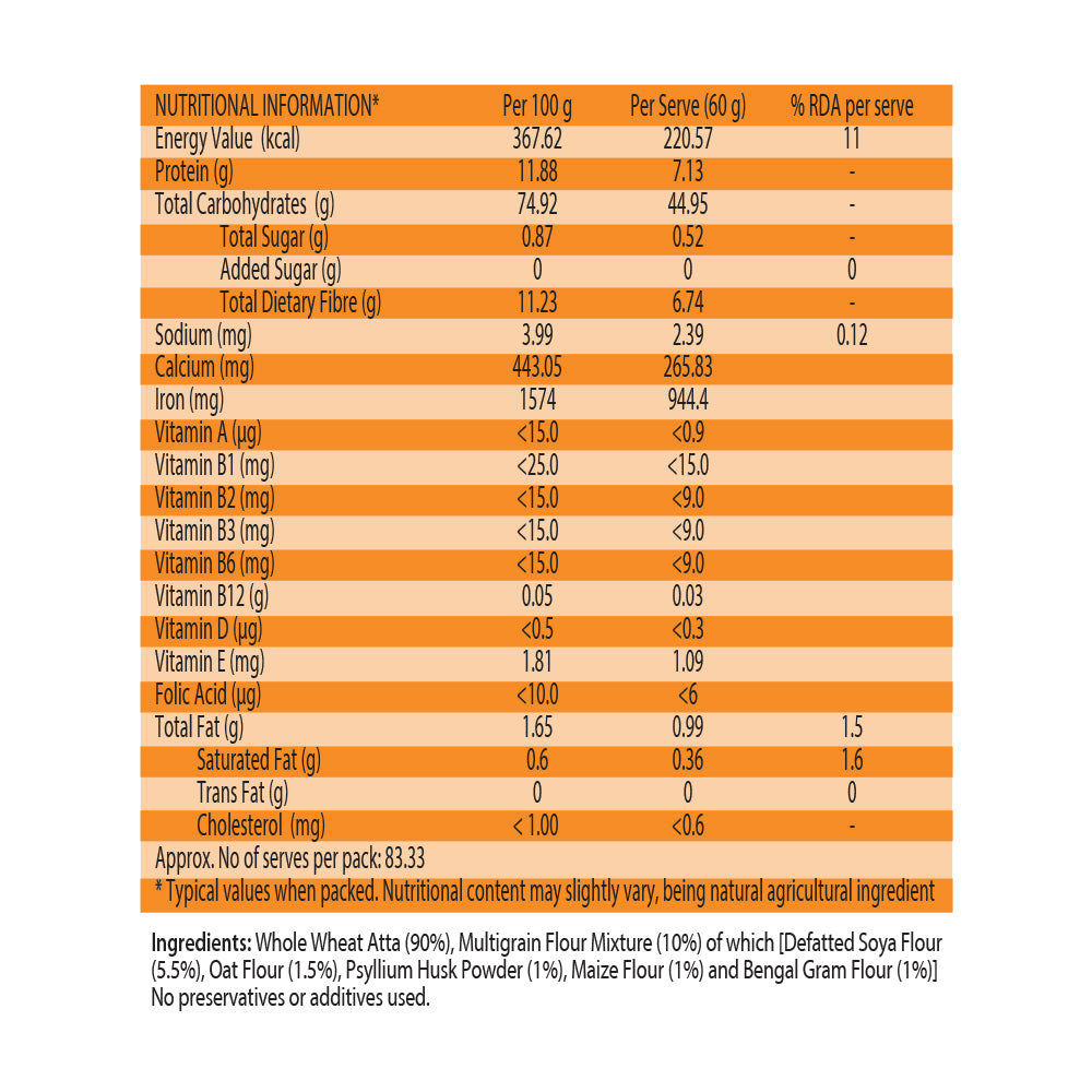 This atta is filled with six nutritious portions of cereal to give you a healthy eating experience.