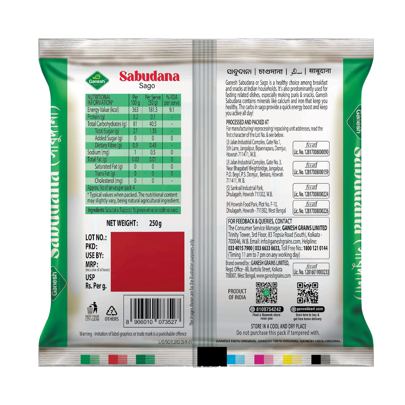 Discover Ganesh Sabudana, made from premium quality tapioca pearls, perfect for traditional fasting recipes like sabudana khichdi, vadas, and kheer. Our sabudana offers a rich texture and authentic taste, ideal for healthy, gluten-free cooking. Enjoy the purity and freshness of Ganesh Sabudana in every bite.